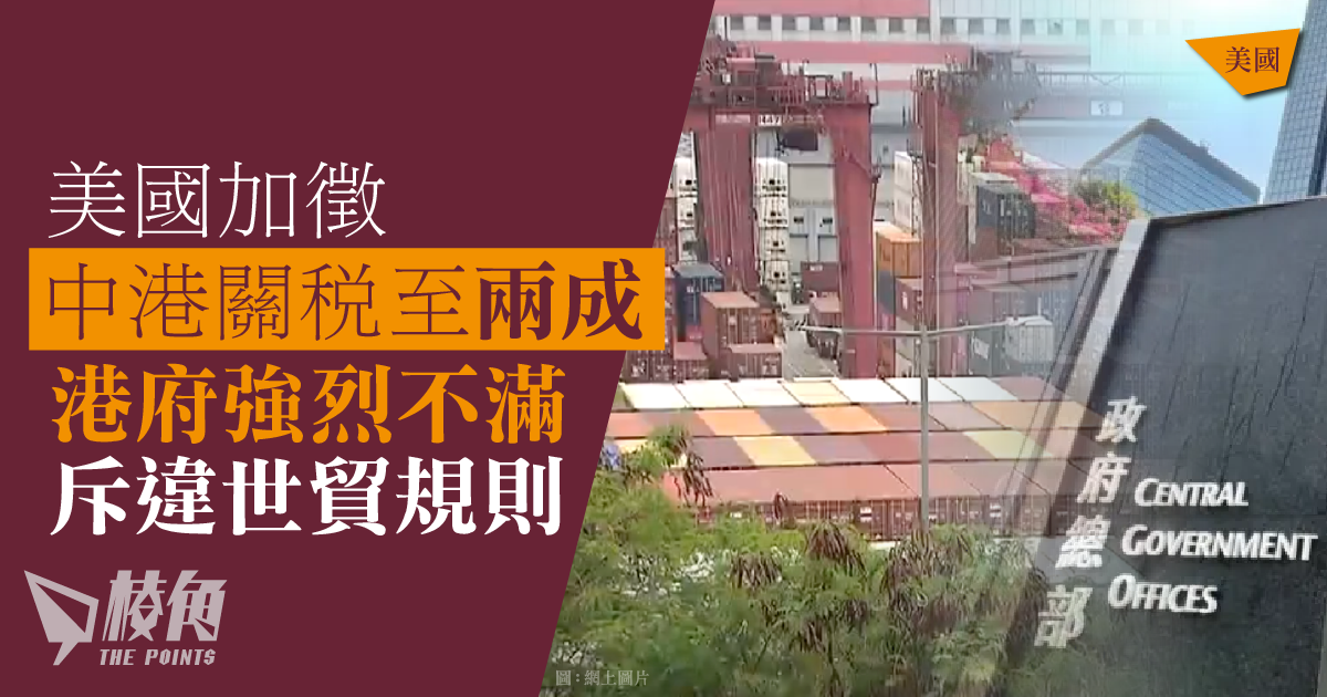 美國總統特朗普再次簽署行政命令,提高對中國產品加徵關稅多10%,即累計至20%,包括由香港入口貨物,即日起生效。港府周二(4日)發新聞稿對措施表示強烈不滿,發言人斥責美國的做法嚴重違反世界貿易組織規則,會就事件向世貿組織提出申訴。另外,中國國務院關稅稅則委員會周二(4日)宣布反制措施,下周一(10日)起將對部分美國原產進口的農產品,如小麥、大豆、乳製品等,分別加徵10%至15%關稅。