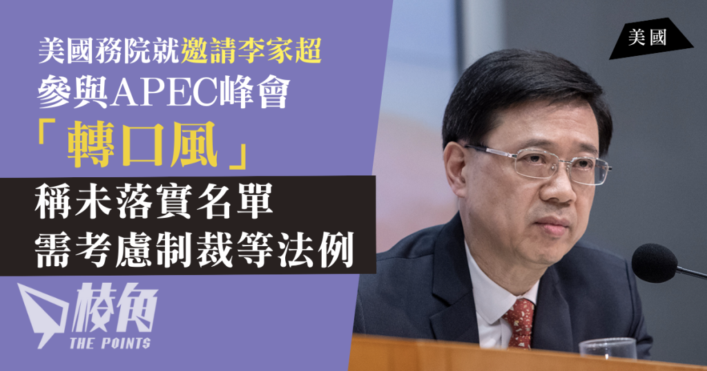 美國務院就邀請李家超參與APEC峰會「轉口風」稱未落實名單 需考慮制裁等法例