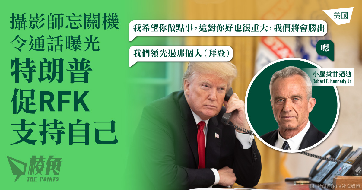 - 網上流傳特朗普與小羅拔甘迺迪的對話,揭露特朗普促請甘迺迪支持自己