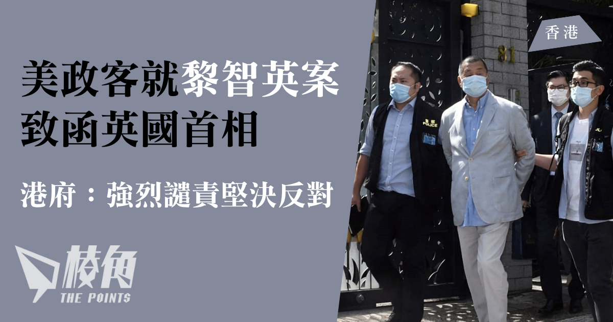 早前美國「國會及行政當局中國委員會」,就黎智英案致函英國首相。港府周四發聲明回應,批評此舉干預黎智英案的司法程序,對此表示「強烈譴責和堅決反對」,並嚴厲譴責美國政客企圖促使向香港司法及檢控人員施加「制裁」。