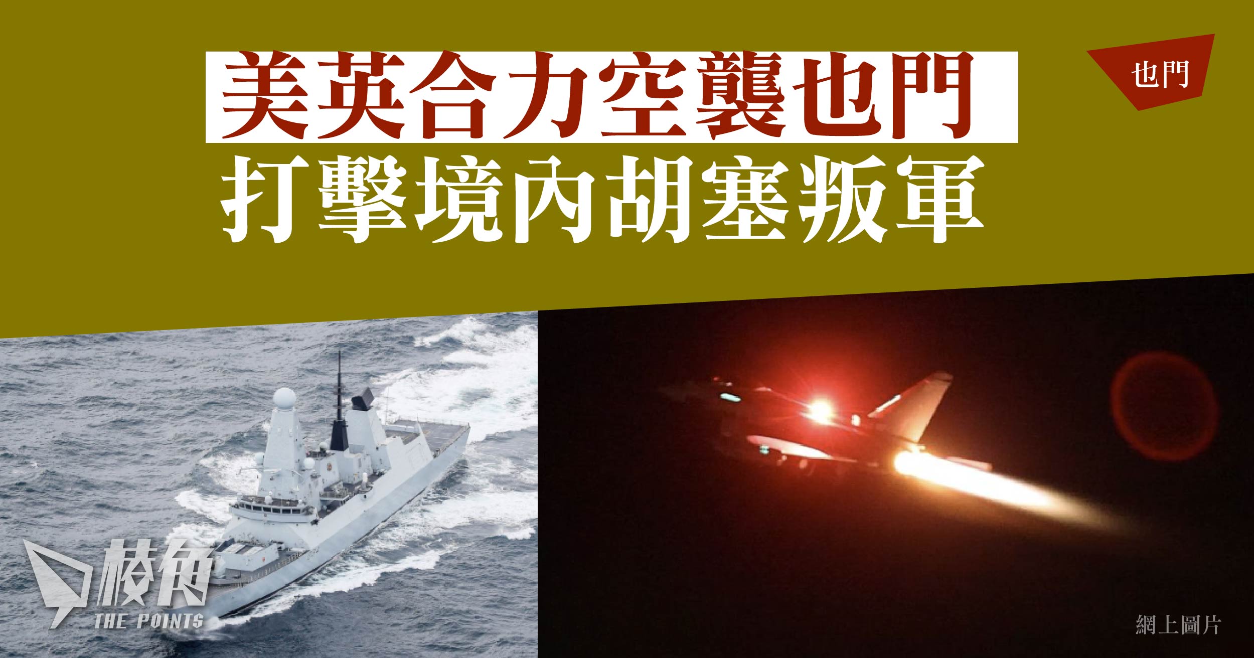 美英等多國聯合在周五(12日)凌晨空襲也門境內的胡塞武裝據點,期間出動軍機、無人機、戰艦和潛艇等,又發射過百炸彈和導彈,胡塞武裝逾60處軍事設施遭破壞,他們發射至少一枚反艦導彈回擊。胡塞武裝指責,美英發動73次襲擊,造成5死6傷,警告美英將要為其公然侵略行為付出「沉重代價」,更揚言會繼續針對駛經紅海船舶。