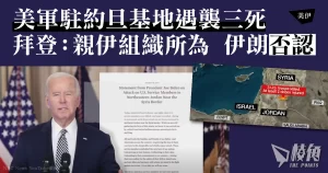 而約旦和伊拉克政府亦分別發聲明譴責襲擊。自以色列與哈馬斯去年爆發大規模衝突後,美軍在伊拉克和敘利亞境內的駐地頻遭武裝組織襲擊。襲擊多透過無人機和火箭彈實施,而這是首次有美軍士兵在此類攻擊中喪生。