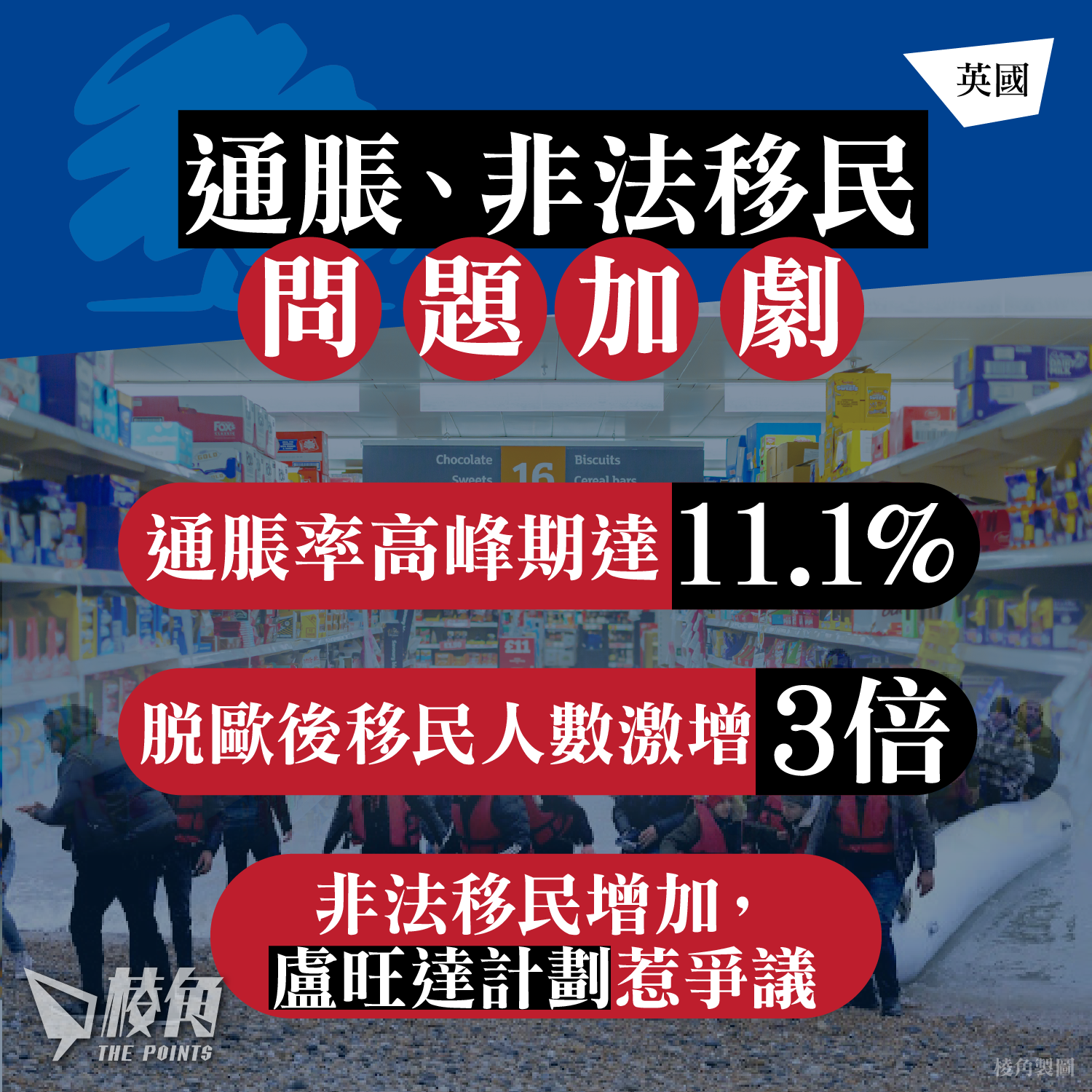 通脹率高峰期達11.1%。脫歐後,移民人數激增3倍,按年非法移民數字亦維持於2萬至4萬人,加重英國經濟負擔。辛偉誠近年大力推動壓抑移民數字,當中針對非法移民的「盧旺達計劃」最受爭議。