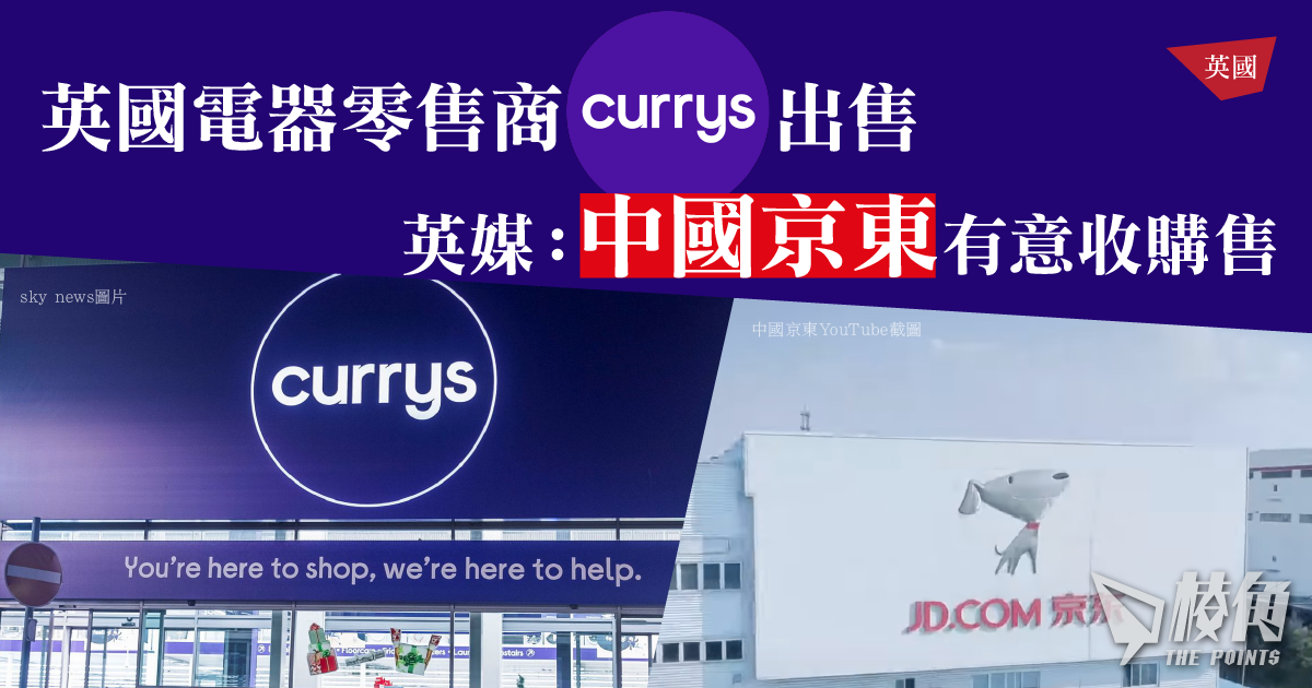 多間英媒周日(18日)報道,英國電器零售商Currys出售業務,《泰晤士報》指,英國投資管理公司Elliott曾出價7億英鎊收購但遭拒絕;《每日電訊報》引述消息人士指,中國電商巨頭京東集團亦有意收購,但報道未有提及報價或其他細節。