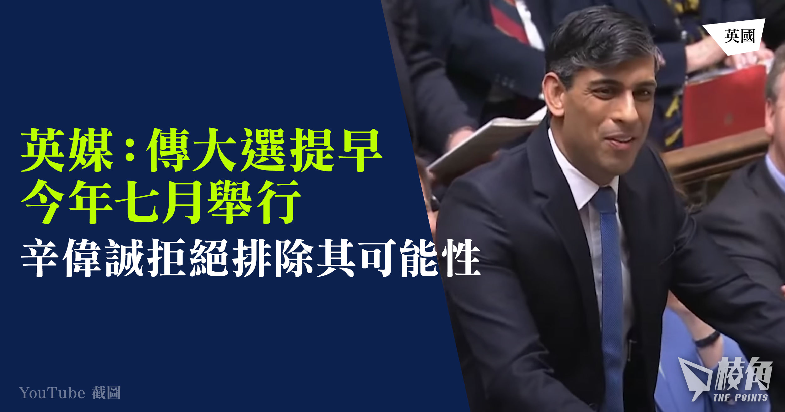 • 多間英國傳媒報道,外界猜測保守黨政府可能會宣布,大選會提早至今年7月上旬舉行