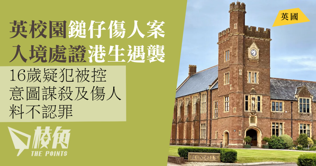 英國上周五(6月9日)發生一宗校園襲擊案,一名16歲少年以鎚仔襲擊2名學生及一名學校職員,其中2名學生嚴重受傷。案發後有消息指其中一名受傷學生為香港留學生,至今日(6月13日)香港入境處回覆傳媒查詢時確認消息屬實,並指已經由外交部駐港特派員公署及駐當地大使館跟進,同時向家屬提供協助。根據英國傳媒的消息,該16歲疑犯被控意圖謀殺及傷人罪,其代表律師透露他們並不打算認罪。