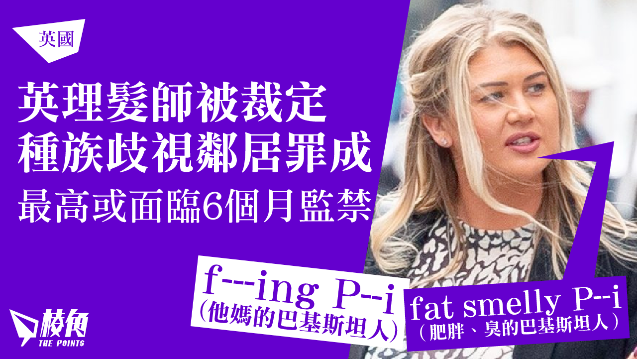 該名理髮師 Katie Bradsell,32歲,被控去年 9 月在其住所外與鄰居 Mohammed Ali,一名漁夫口角時,以帶種族主義的言辭包括「f—ing P–i 」(他媽的巴基斯坦人)及「fat smelly P–i 」(肥胖、臭的巴基斯坦人)辱罵對方。