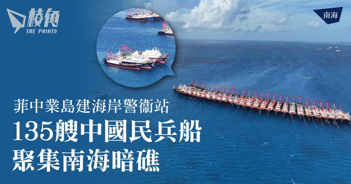 菲律賓最近在與中國具有主主權爭議的中業島(Thitu Island)建立海岸警衞站,日前菲律賓海岸警衛隊(PCG)稱,超過135艘中國民兵船聚集在律賓海岸附近的一個暗礁,數量令人震警。路透社報導,菲律賓海岸警衛隊已下令在礁石附近巡邏。