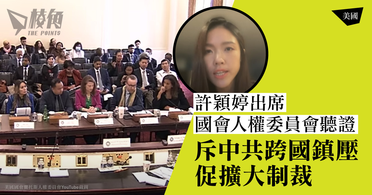 - 許穎婷以自身經歷,向美國國會一個人權委員會講述中共的跨國鎮壓惡行