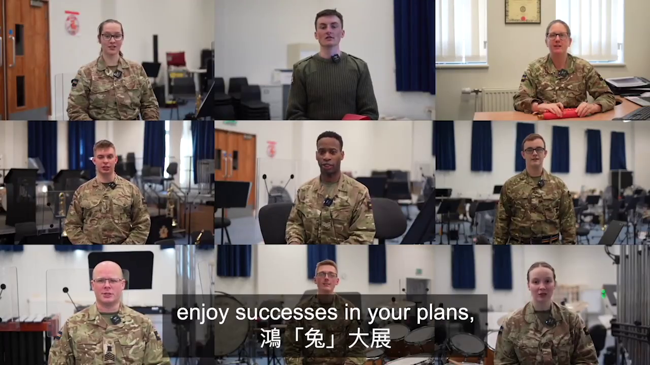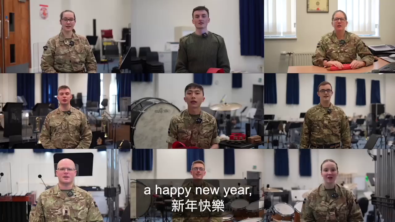 港英時代最後一任港督彭定康Chris Patten拍片,向全球香港人拜年,鼓勵香港人逆境奮進重難。自從BNO簽證計劃實施之後,數以萬計的香港人移居英國本土,成為當地社區的新生力量; 據知,有持BNO護照的港人,成為英國陸軍軍樂團樂手。正值新春佳節,英軍Twitter@@BritishArmy年初一發推文,陸軍高切斯特軍樂團成員專誠拍片,用廣東話拜年,祝願大家「新年快樂,身體健康,鴻兔大展」,眾樂手都很努力用廣東話講賀辭,咬字非常清楚,在片的末段,眾樂手手持揮春致意。