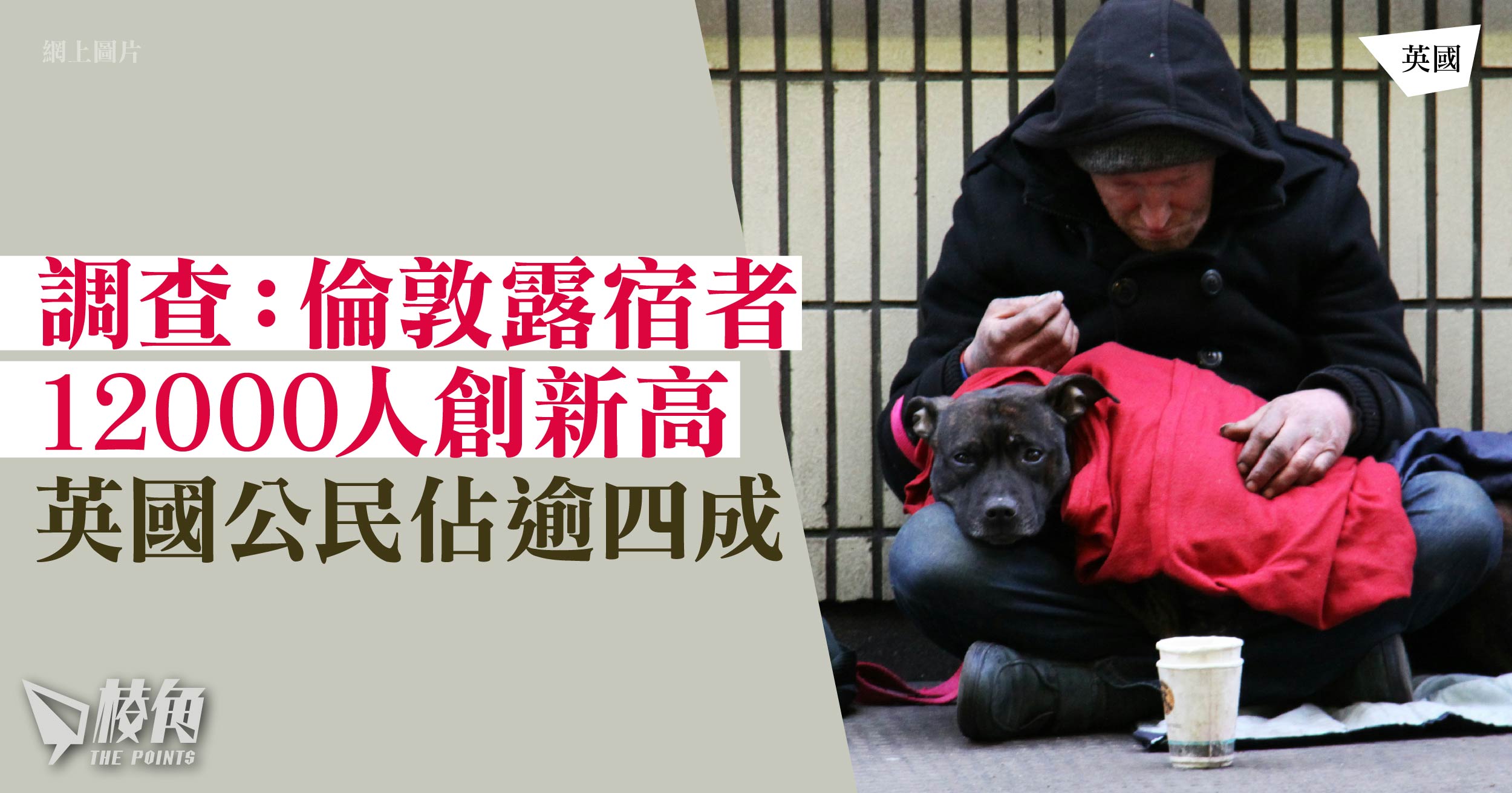 - 截至今年3月底全年,倫敦露宿者約11,993人創新高