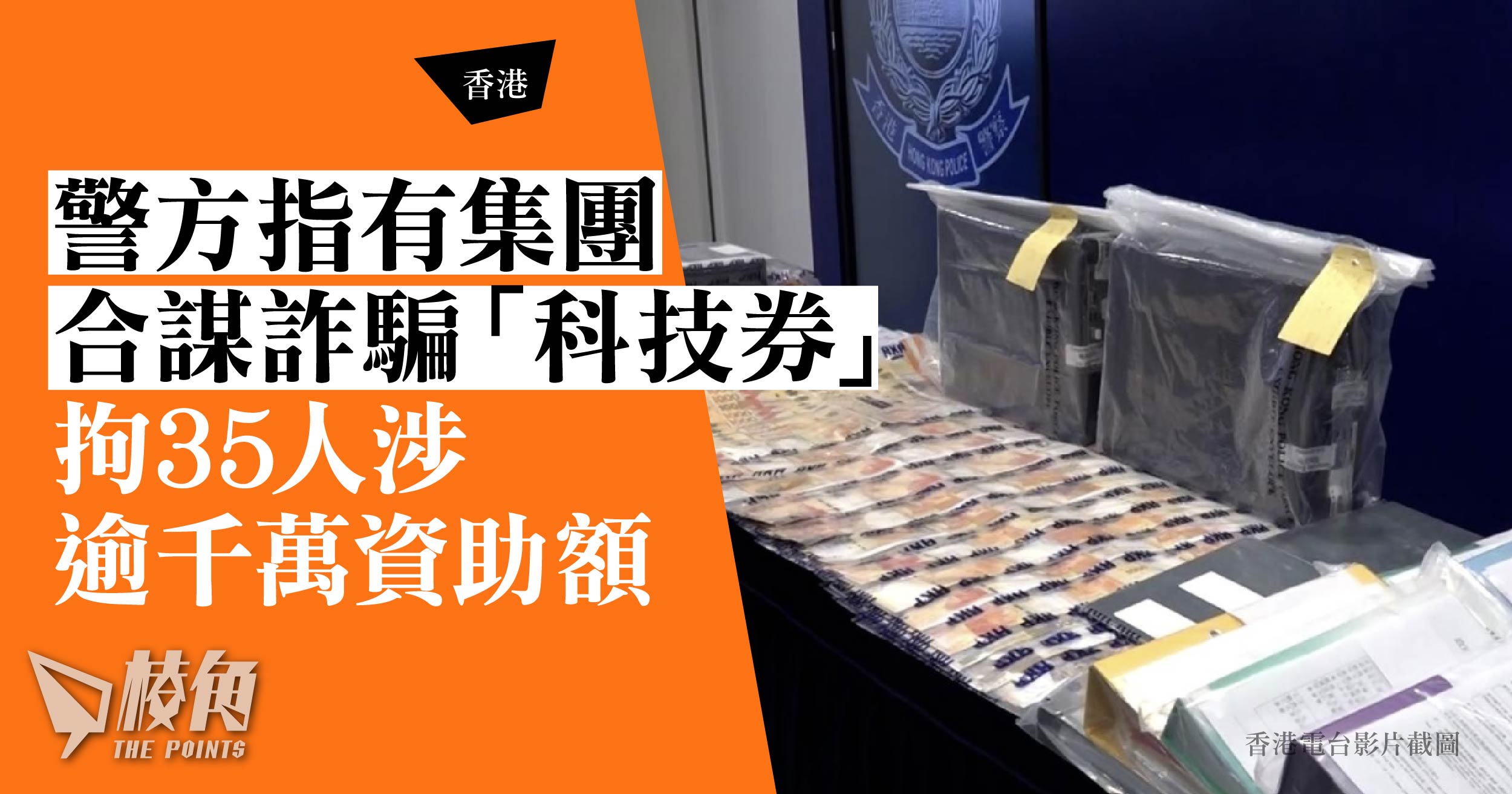 - 警方拘35人、涉50宗「科技券」申請、涉1036萬港元
