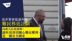 上月中,英國最高法院以盧旺達人權紀錄差劣、被送至盧旺達者可能面對人權剝削,從而違反英國法律及國際人權法為由,裁定英國政府計劃將難民移送至中非國家盧旺達的政策違法。然而,保守黨政府並未因最高法院的裁決而放棄相關計劃。英國內政大臣祁湛明(James Cleverly)周二(12月5日)飛抵盧旺達首都基加利,與該國就計劃簽署新協議。保守黨亦計劃透過由國會立法來確認盧旺達是「安全國家」去阻礙法律挑戰。