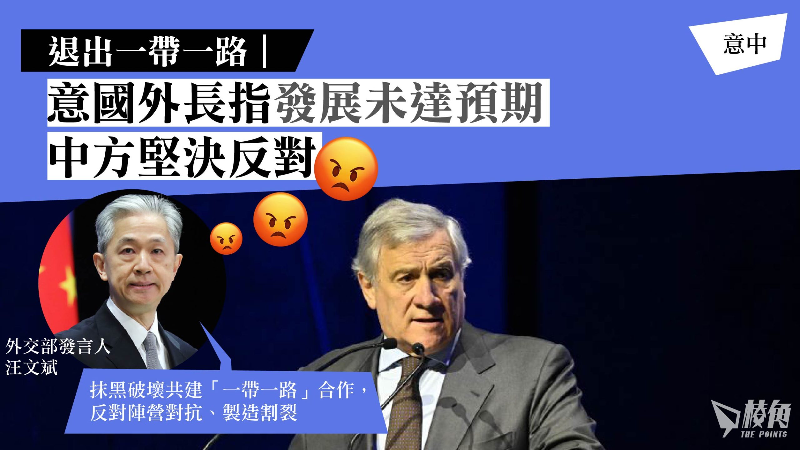 中歐領導人會晤前夕,多家外媒於周三(12月6日)報道,稱意大利已正式通知中國將退出一帶一路計劃。意大利外長塔亞尼(Antonio Tajani)同日確認消息,他指意大利對華出口比反其他沒有加入一帶一路的歐洲國家少,兩個經貿發展未達預期。中國外交部發言人汪文斌於周四(7日)表示,中方堅決反對抹黑破壞共建一帶一路合作,反對陣營對抗、製造割裂。