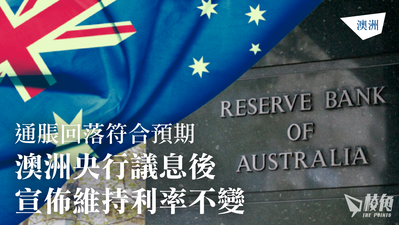 8月1日澳洲儲備銀行例行議息會議,連續第二個月決定維持現金利率在4.1%的水平,這是澳洲央行在當前的加息週期中,首次兩個月沒有加息; 有經濟師指近日通脹及個人開支放緩,減輕了加息壓力。財長Jim Chalmer指對抗通脹仍未結束,未來仍有加息可能。