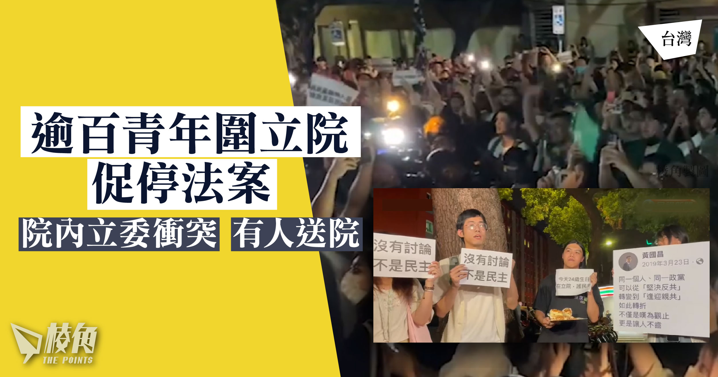 逾百青年圍立院促停法案 院內立委衝突有人送院