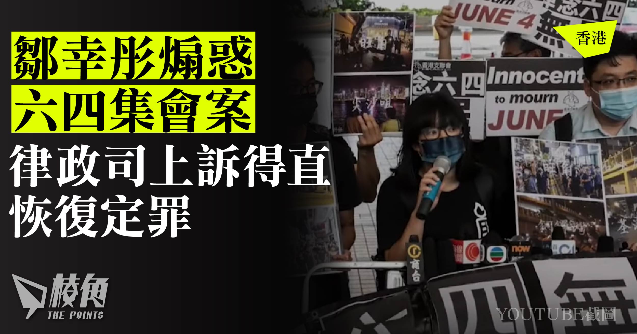 - 鄒幸彤煽惑六四集會案,律政司上訴得直