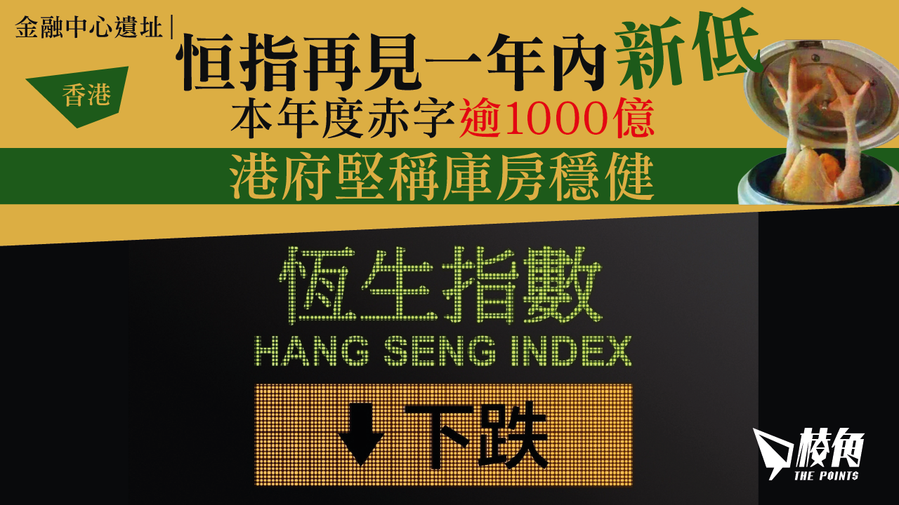 香港吸引力下降,早前恒指被台灣加權指數超越。上週有官員反對有關香港已成「國際金融中心遺址」的說法。周一(4日)恒指先升後回,收市跌184點,報16646點,是自去年11月以來新低。同日,財政司司長陳茂波在立法會公布數據,預計今年全年綜合赤字約逾1000億港元。他指,赤字受整體經濟和資產市場表現影響,令政府收入較預期少,需審慎思考善用公帑。
