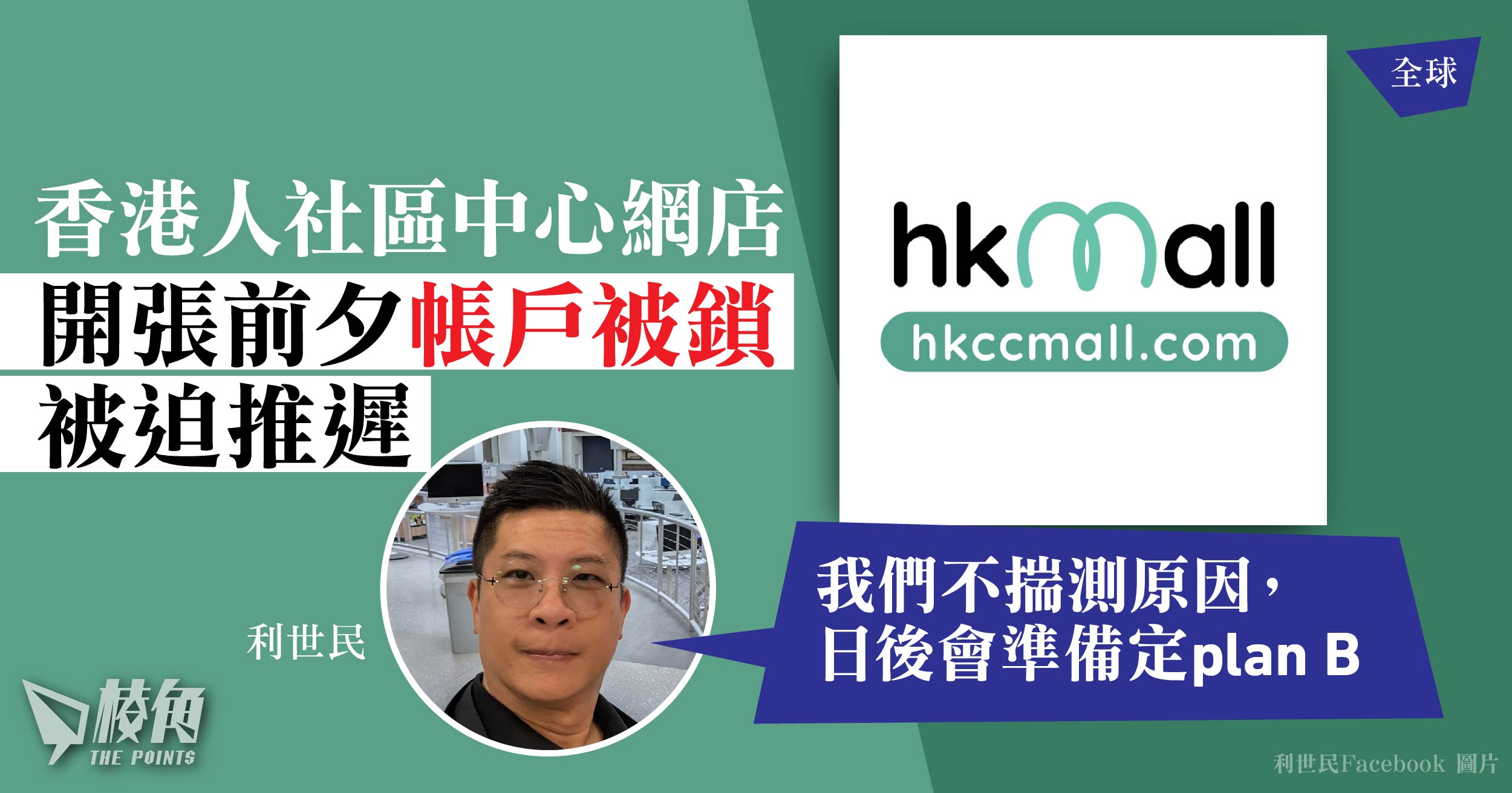 - 香港人社區中心籌備的網上市集「HKCC Mall」,在試業前夕帳戶突然被鎖