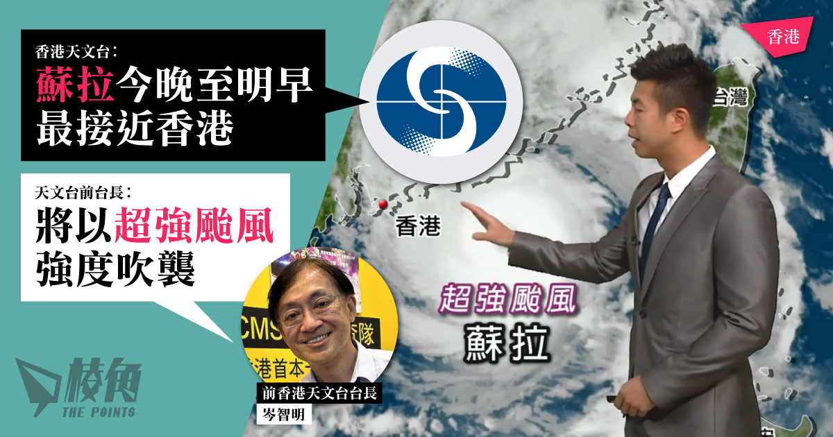 前天文台台長岑智明及林超英,早前亦在社交媒體貼出蘇拉的衛星圖,表示蘇拉的風眼清晰。岑就指出目前天文台仍料蘇拉最接近香港時,會維持超強颱風的程度,中心風力時速達到每小時205公里以上,相信是1979年荷貝及2017年天鴿後,威力最強的風暴,但他亦另有指出天鴿當年中心風力最高只有達到時速每小時185公里,故呼籲市民務必留在安全地方。