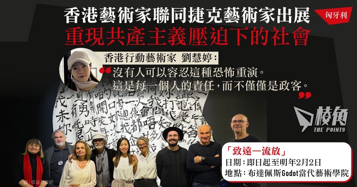 中國與匈牙利於今年10月簽署一項安全合作協議,加強雙邊執法,被質疑真正目的為打擊及拘捕流亡異見人士或政治庇護者。香港行動藝術家劉慧婷(Loretta Lau)聯同6位知名捷克藝術家,於匈牙利首都布達佩斯舉行展覽,展出多項藝術品,分享因政治迫害而被迫流亡的人的故事,喚起社會正視威權主義的現實。