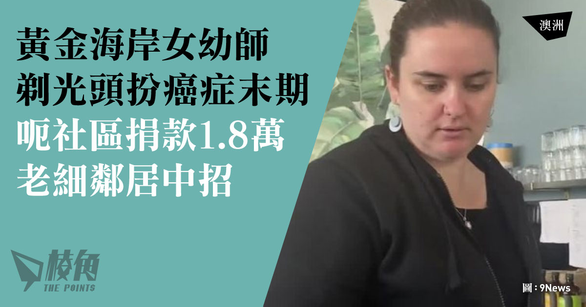 澳洲黃金海岸一名在課後托兒中心工作的女幼師,為騙取上司及同事的同情心,竟然剃光頭扮患上癌症。同事們不虞有詐,不但只細心管接管送這位女幼師,還發動社區籌錢資助她治病。東窗事發,該名女幼師目前遭到刑事撿控。