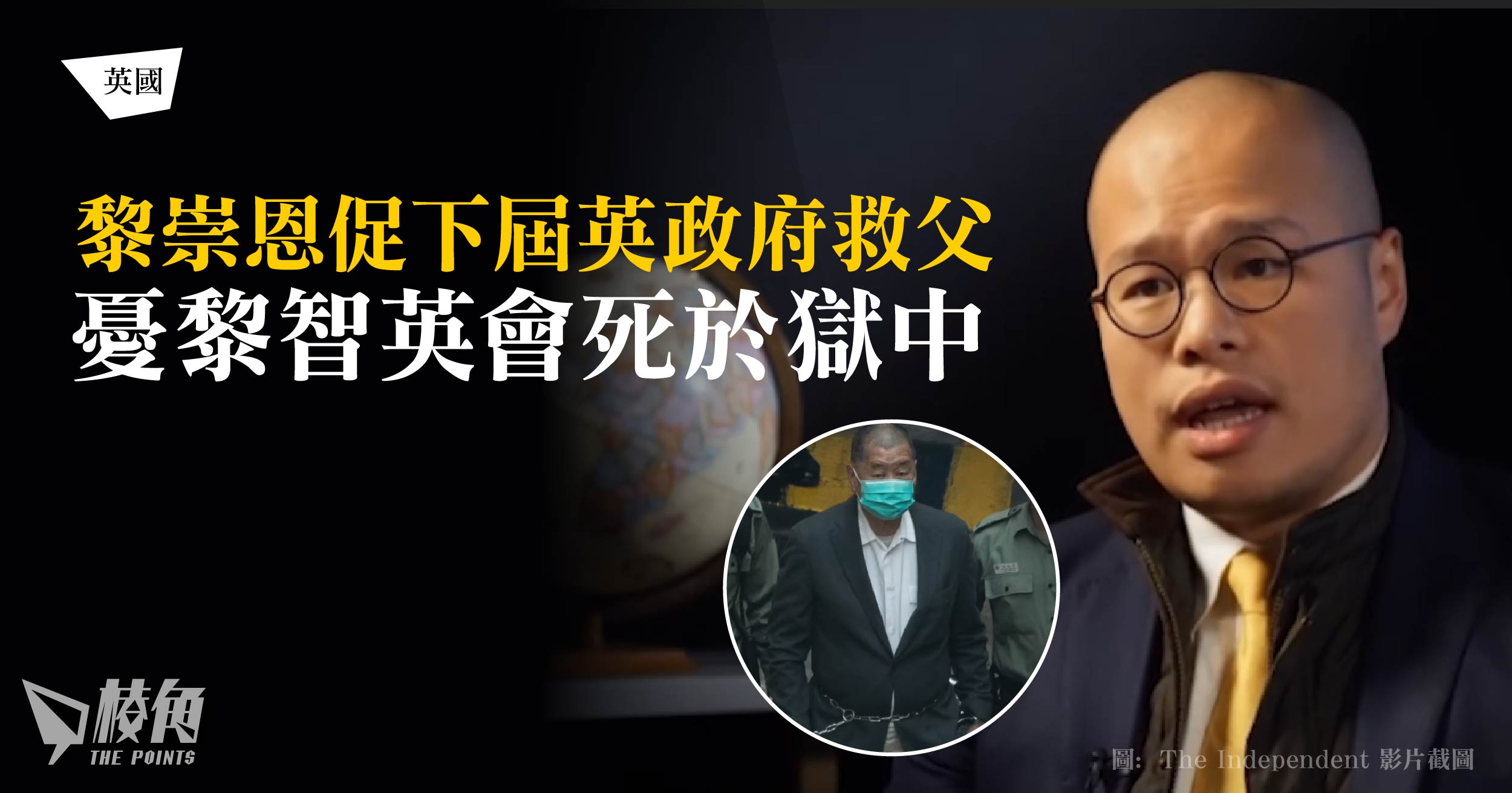 黎智英一直站在對抗中國共產黨的前線,因政治打壓被控違反《國安法》,並遭未審先囚已被關押超過三年。黎崇恩表示,「我不認為工黨或保守黨希望見到我父親死在獄中,但現在這是時間問題,已經三年半了,在他這個年紀,這種事隨時都有可能發生」。