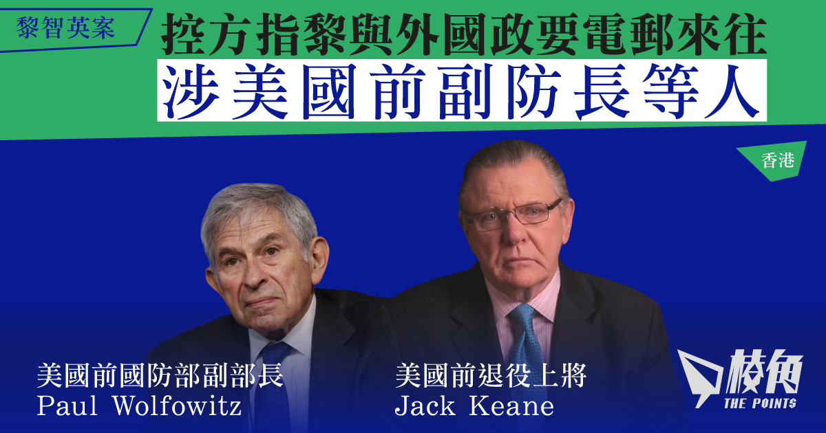 黎智英案周一(8日)進入第7日審訊,控方在庭上讀出控辯雙方的承認事實,提到警方於2020年8月拘捕黎智英後,從他的手機中發現多個與外國政要的電郵通訊紀錄,包括美國前國防部副部長Paul Wolfowitz、美國前陸軍副參謀長Jack Keane、美國國務院前資深顧問惠頓(Christian Whiton),以及《華爾街日報》編輯William McGurn等;又指《壹傳媒》前行政總裁張劍虹及前副社長陳沛敏等多名《蘋果日報》高層被捕後,當時尚未被捕的時任執行總編輯林文宗曾將相關成員,移除出一個名為「國安法應變委員會」的即時通話群組。