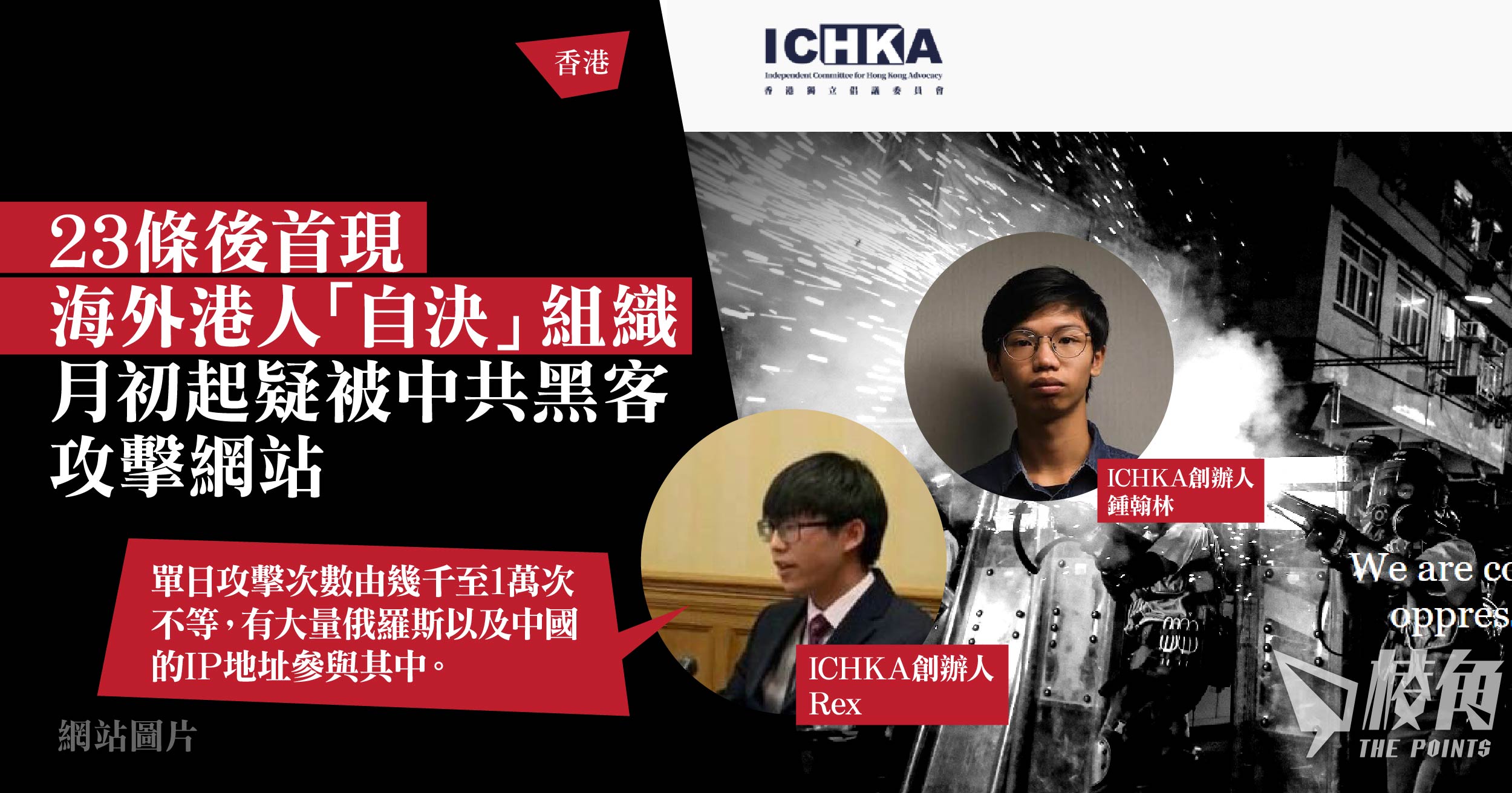 由香港前「學生動源」召集人鍾翰林牽頭成立的新組織「香港獨立倡議委員會」(Independent Committee for Hong Kong Advocacy),其官方網站本月初起懷疑遭到中共黑客攻擊,組織懷疑與他們的倡議工作相關。