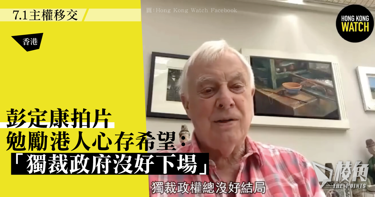 - 彭定康籲港人對未來抱希望,獨裁政府沒好下場