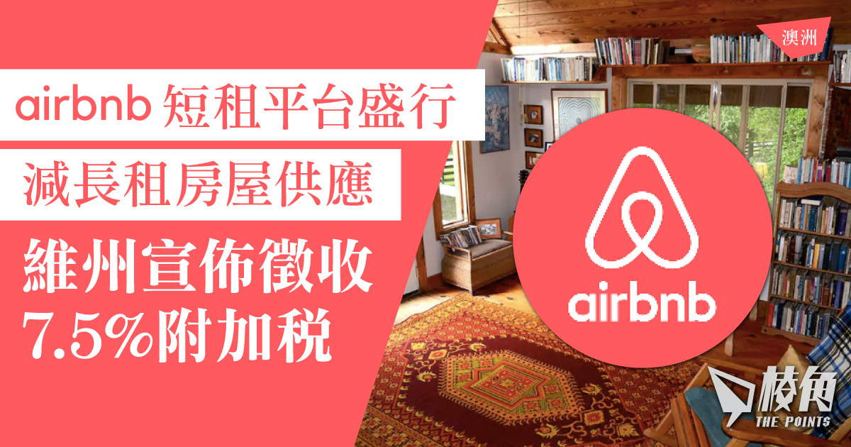 維州州長Daniel Andrews宣布,從2025年1月1日起,對Airbnb和Stayz等短租平台將額外徵收7.5%附加稅。近年短租平台盛行,間接令長租房屋減少。州長期望政策可以增加房屋供應,減輕目前租務市場求過於供的情況。