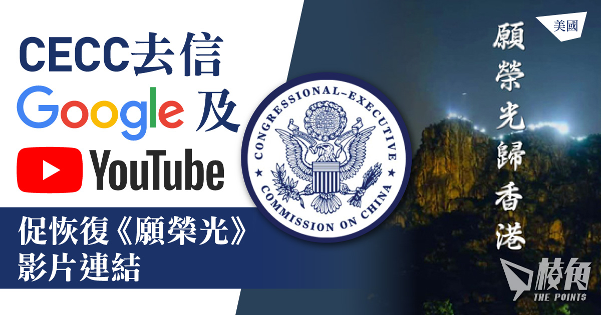 美國國會及行政當局中國委員會(CECC)的主席史密斯(Chris Smith)及聯席主席默克利(Jeff Merkley)於周三(6月5日)去信Google的行政總裁Sundar Pinchai和YouTube的行政總裁Neal Mohan,促請他們恢復歌曲《願榮光歸香港》在YouTube平台上的影片連結,並呼籲Google披露任何有關就該禁令向香港法院提出上訴的計劃,因為香港法院的裁決違反了這些公司承諾維護的國際人權原則。