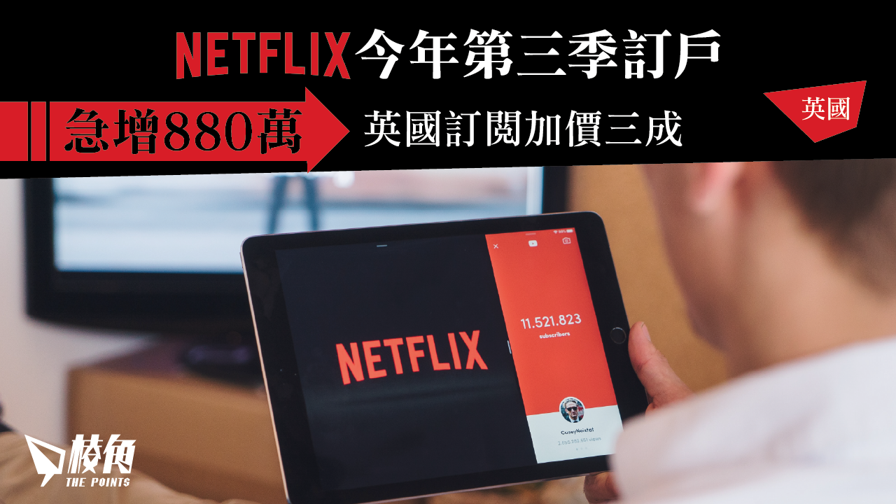 網上影片串流平台Netflix周三(18日)發公告表示,今年第三季新訂戶人數超出預期,刺激股價上升13%,英、美、法部份訂閱計劃將會調整,普通用戶訂閱費用加價£1,高級用戶訂閱費加價£2至£17.99。