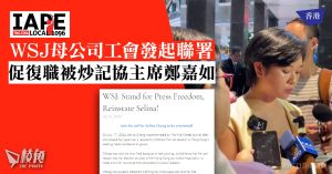 - 《華爾街日報》母公司在北美的工會就香港記協新任主席鄭嘉如被辭退一事發起聯署