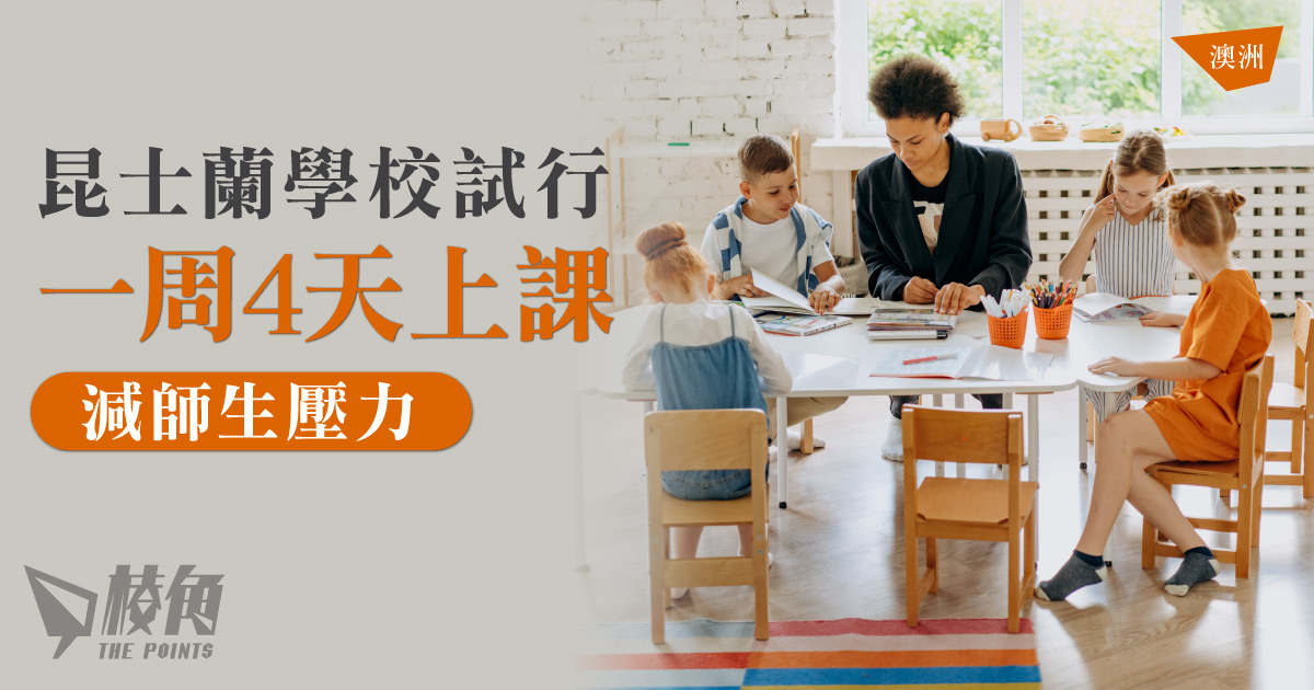近年提倡一周返工4天,澳洲亦有倡議一周上課4天來減輕師生壓力,昆士蘭政府最近開綠燈給公立中小學,容許他們更改課程表,縮減每周上課時數。學校可以因應教師人手調動及學生與員工的「幸福感」及「參與度」來作出修改。