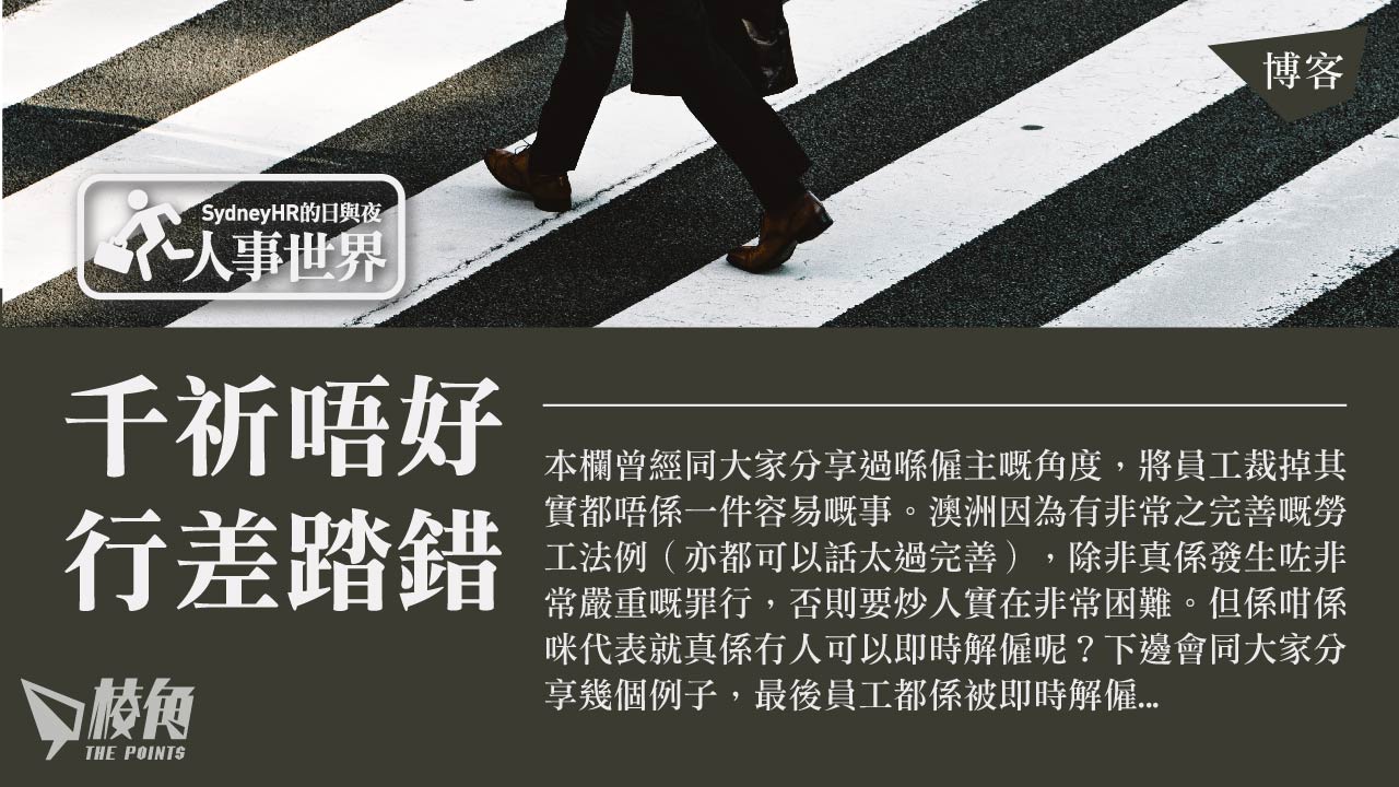 本欄曾經同大家分享過喺僱主嘅角度,將員工裁掉其實都唔係一件容易嘅事。澳洲因為有非常之完善嘅勞工法例(亦都可以話太過完善),除非真係發生咗非常嚴重嘅罪行,否則要炒人實在非常困難。但係咁係咪代表就真係冇人可以即時解僱呢?下邊會同大家分享幾個例子,最後員工都係被即時解僱。