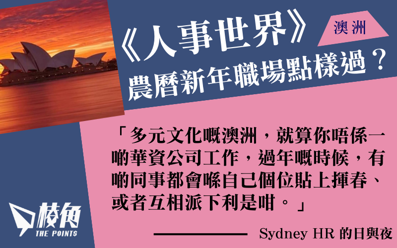新正頭, Sydney HR日與夜喺度祝大家農曆新年快樂,祝大家今年喺職場上工作順利,能夠賺取你應得的份。趁住過年,寫多一篇《農曆新年特別篇》,同大家分享一下喺外地職場,華人如何渡過。