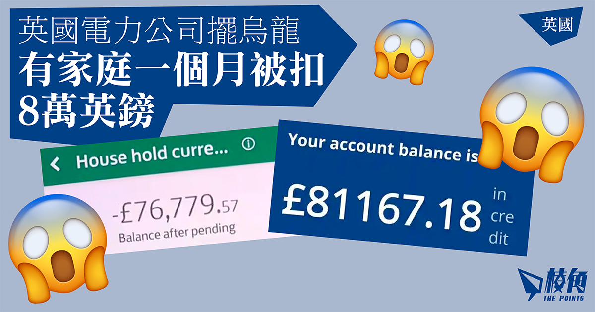 英國電力公司擺烏龍 有家庭一個月被扣8萬英鎊