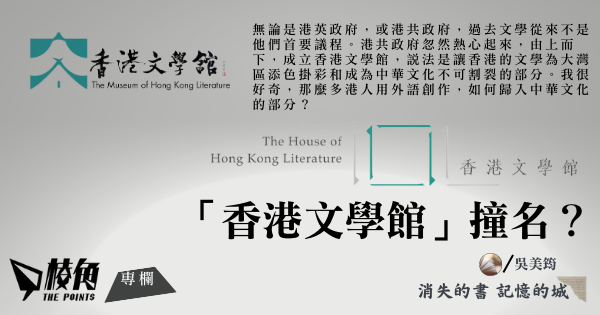 【消失的書 記憶的城】「香港文學館」撞名?- 吳美筠