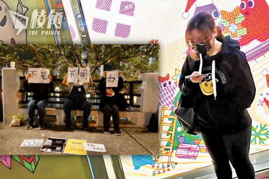 曾雨璇報稱是中大法律博士生,今年元旦,她在銅鑼灣崇光百貨外展示前年「七一刺警案」嫌犯梁健輝的素描被捕;在保釋期間的「六四」前夕,她又被指參與展示「國殤之柱」的直幡活動。