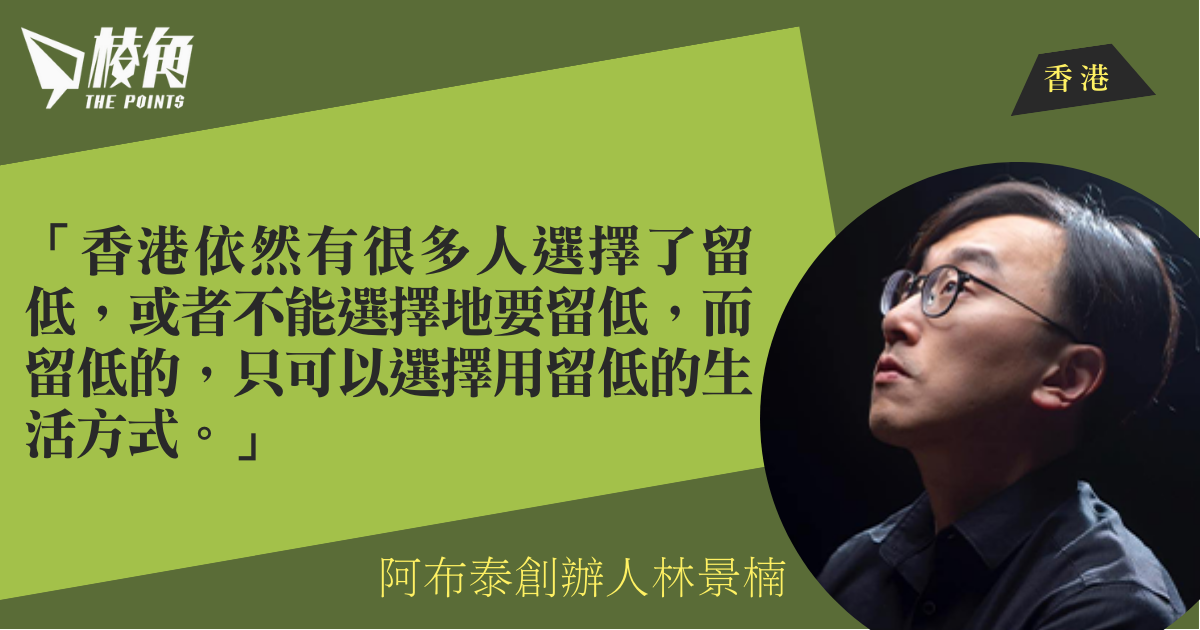 阿布泰國生活百貨創辦人林景楠,涉民主派初選47人案,被控「串謀顛覆國家政權罪」,新年伊始,他於1月1日在社交平台發文,上載與財政司司長陳茂波合照,並稱「香港作為國際大都會,有完善的法律法規,未來,生機處處。留下來的人,讓我們一起為這個城市努力,說好香港故事;說好您們每個人的奮鬥故事。」其實他自去年8月31日起,已多次發文強調「香港是中國不可分離的一個部分」,又透露兩女兒已跟媽媽在泰國開展新生活,一切安好。