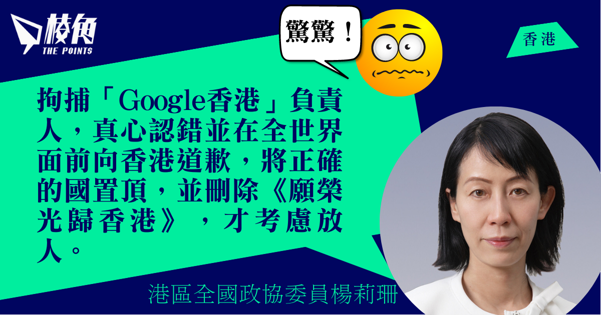 政協委員:應拘捕Google香港負責人 國歌置頂、刪除《榮光》才放人