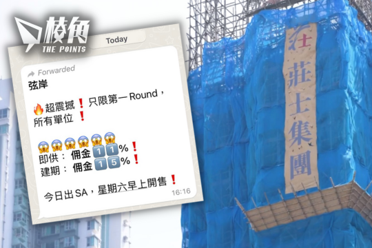 原定周六(6月24日)開賣、位於港島區鴨脷洲的新盤弦岸,首輪發售25伙,但周五晚上約7時半突然在官網的「銷售信息」中指,「以上指明住宅物業由2023年6月24日上午10時起停售」。弦岸發展商為莊士中國,開賣前已傳出為谷銷情,地產經紀佣金最高達15%,網上更流傳相關WhatsApp截圖,被業界人士指為近年罕見的佣金率。