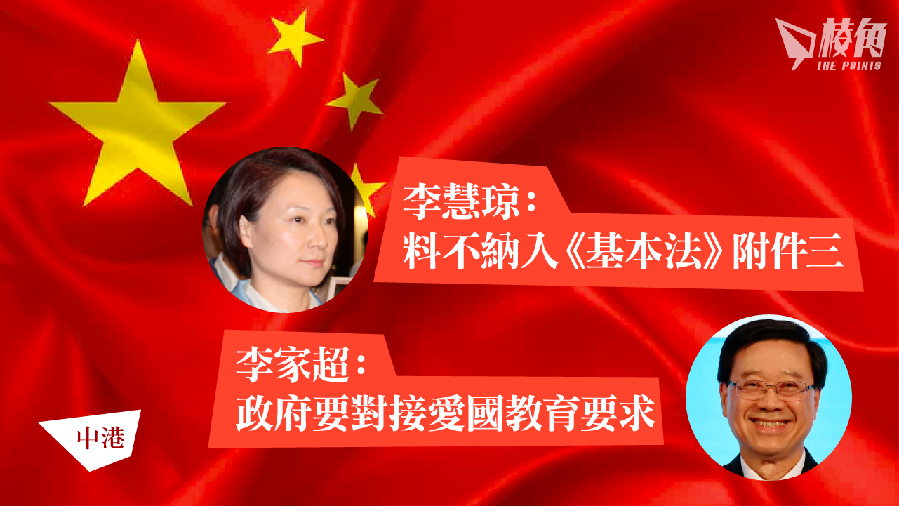 人大審理愛國主義教育法 增港澳台人士對中國認同 李慧琼:料不納入《基本法》附件三