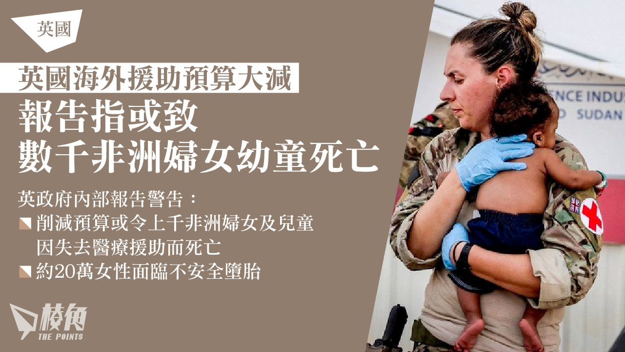 英國政府最新的內部評估指出,英國今年大幅削減對海外國家援助預算將導致非洲大量女性及兒童失去適切的醫療援助,其中不少婦女可能因而需要接受不安全墮胎,從而引至上千人死亡。英國外交聯邦及發展事務部(The Foreign, Commonwealth and Development Office)指,他們今年必須大幅削減預算以達到訂下的財政目標,但強調這並非長遠措施,來年會重新調高預算。