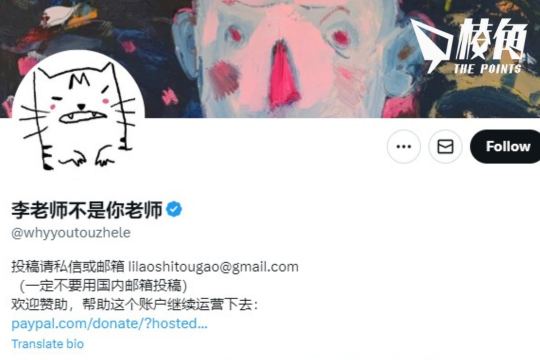 在社交平台X(前身為twitter)上追蹤者數目達140萬的「李老師不是你老師」帳戶,猶如一個訊息交流中心,向全世界披露翻牆民眾傳給他,必定被北京網管審查的真實圖文和影音,因而聲名大噪。「李老師不是你老師」帳戶的「真身」李穎,目前旅居意大利,他接受《紐約時報》中文網訪問時表示,對中國政府來說,他是個麻煩製造者而被盯上,以致他父母被騷擾、帳戶被凍結而飽受煎熬,甚至一年搬4次家。