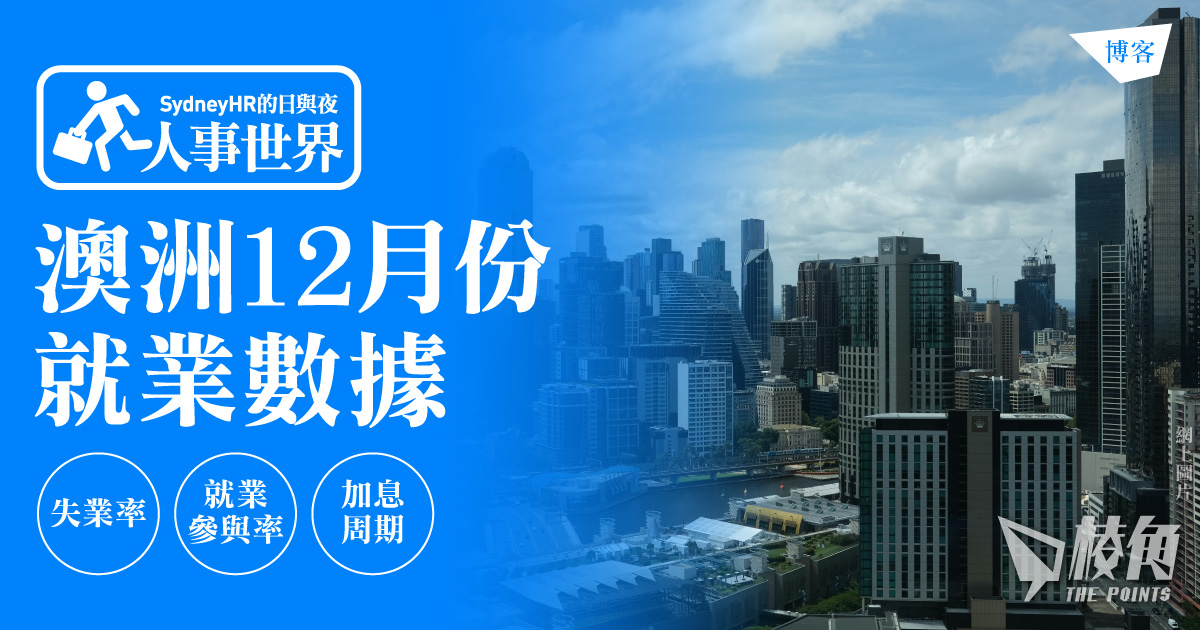 就業參與率微升至67.2%,新增全職職位57,000個,全職勞動人口為9,900,000左右。兼職職位新增4700個,勞動人口為4,350,000左右,所以澳洲勞動人口大約一千四百萬左右,是全澳人口的53 %。就業不足率亦升至6.5%,意味就業人口的生產能力未被充分利用的情況加劇,技術不匹配的情況亦趨嚴重。值得留意的是年青人(15-24歲)失業率上升至9.3%,超過現時整體失業率一倍以上,顯示於該sector就業情況未如理想。調查發現他們高失業率的原因是由於他們有更高被解僱的風險:在職年期短、技能水平未達標準、對公司欠缺歸屬感等⋯⋯ 另外,他們自願離職的比率亦比其他年齡層為高。