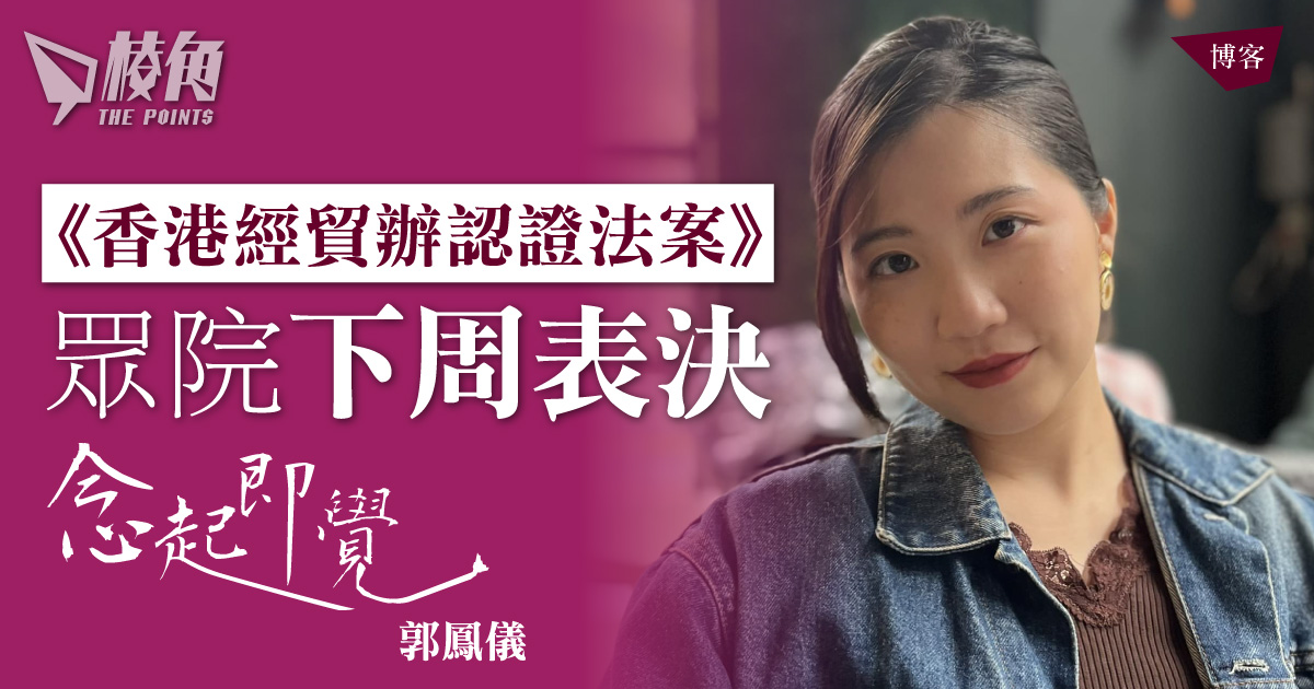 下星期初,眾議院會就《香港經貿辦認證法案》投票,假若通過就只剩參議院投票與總統簽署兩關。