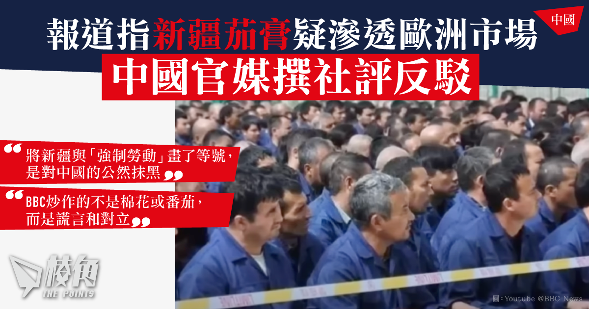 英國《BBC》周一(2日)報道指,英國及德國多家超級市場出售的「意大利」番茄醬可能含有來自新疆的番茄,工廠涉強迫勞動及虐打工人等,報道引起關注。中國官媒《環球報》同日刊登社論,批評報道抹黑中國,企圖將新疆及「強迫勞動」畫上等號,炒作「謊言和對立」。
