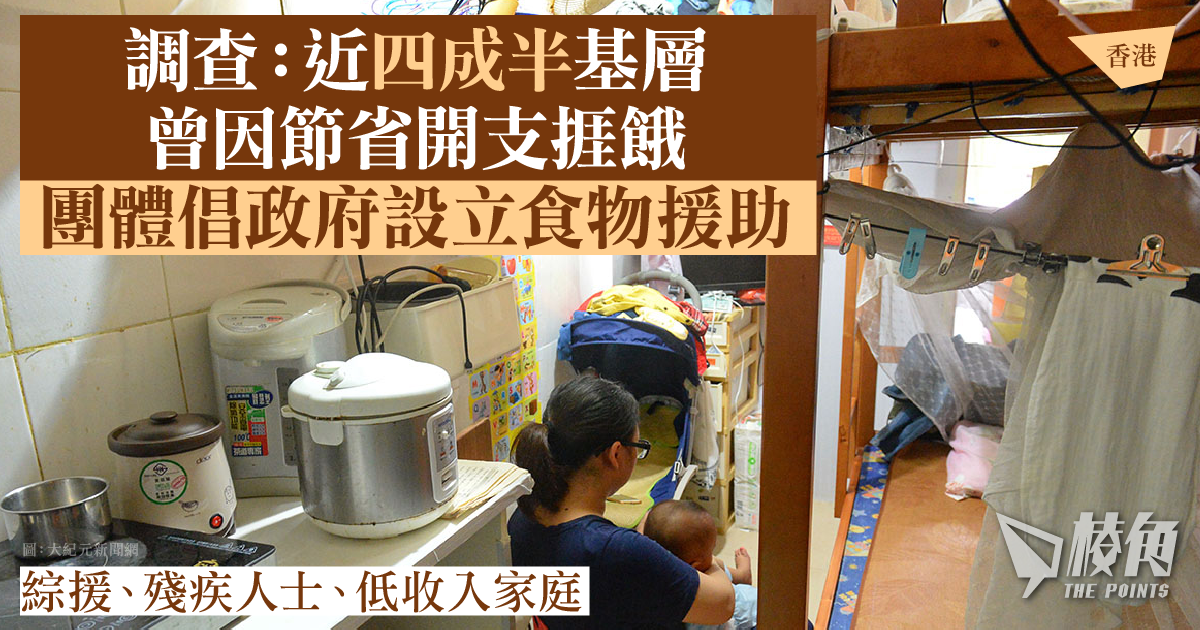 調查:近四成半基層曾因節省開支捱餓 團體倡政府設立食物援助
